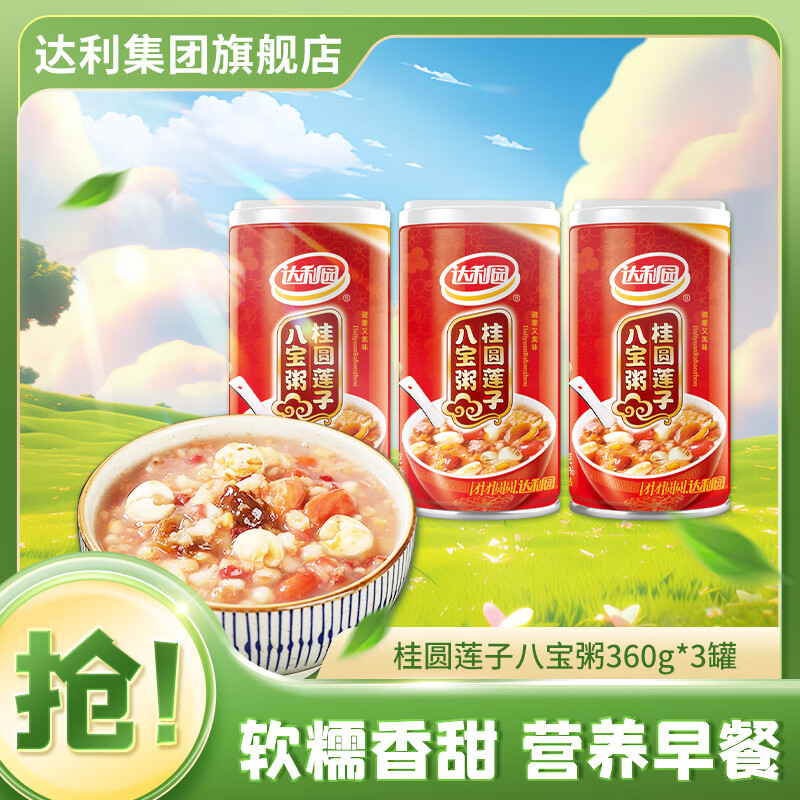 包邮 达利园八宝粥营养方便速食早餐粥粮油调味速食粥杂粮粥即食中秋送礼 桂圆莲子粥360g*3罐【尝鲜装】 八宝粥